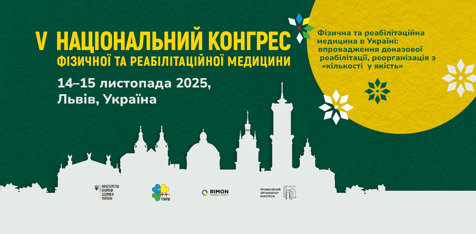 Для нас велика честь запросити Вас взяти участь у V-му НАЦІОНАЛЬНОМУ КОНГРЕСІ ФІЗИЧНОЇ ТА РЕАБІЛІТАЦІЙНОЇ МЕДИЦИНИ «Назва», що відбудеться 14-15 листопада 2025 р. у м.Львів у гібридному форматі (оффлайн та онлайн).