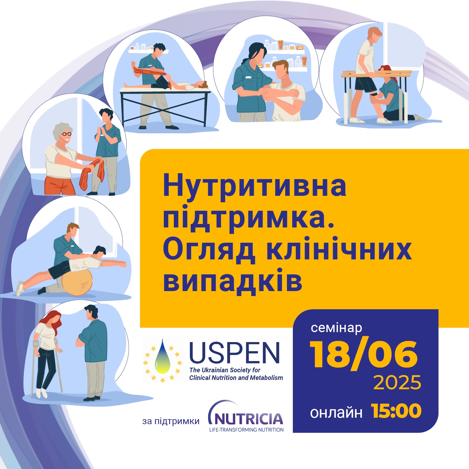 В рамках семінара будуть розглянуті питання призначення нутритивної підтримки на етапі реабілітації при травмах спинного мозку, черепно-мозкової травмі, опіках, ампутаціях, при пролежнях, а також кахексії.